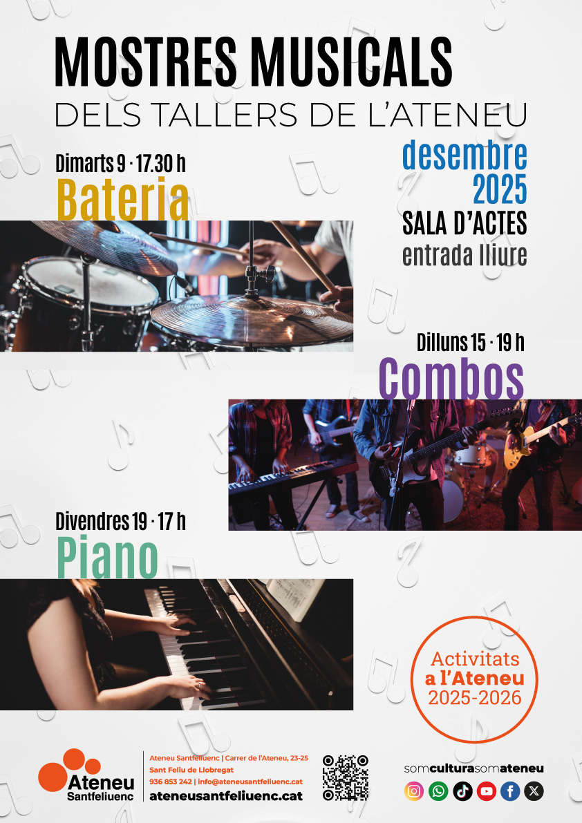 17.35 h – Nens i nenes i adolescents interpretaran partitures, covers i composicions pròpies.