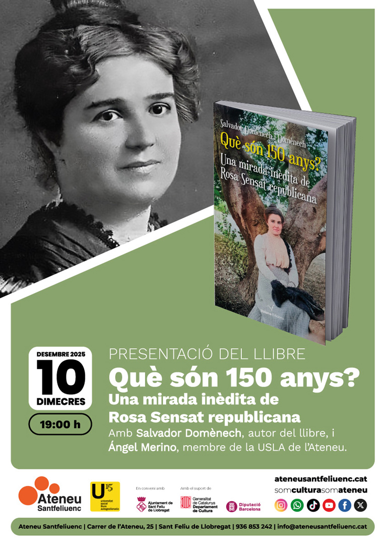 Presentació del llibre “Què són 150 anys? Una mirada inèdita de Rosa Sensat republicana” amb l’autor, Salvador Domènech. Presentació a càrrec d’Ángel Merino, membre de la USLA de l’Ateneu.