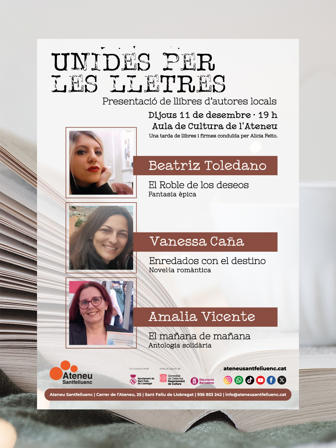 Presentació de llibres d’autores locals: Beatriz Toledano, Vanessa Caña i Amalia Vicente. Conductora de l’acte: Alícia Feito