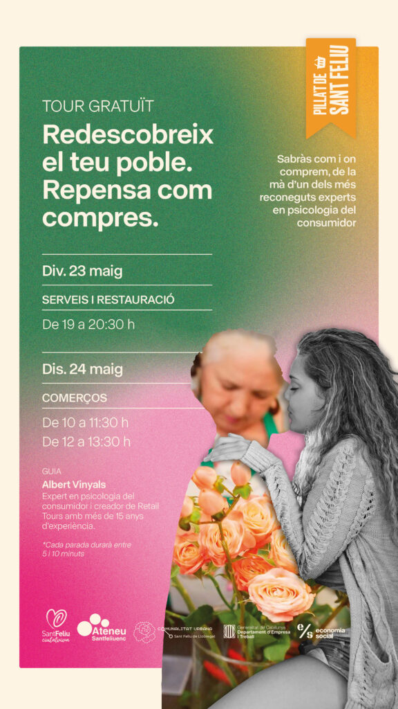 - Cultura de consum (novembre-desembre): promoure un consum responsable i cultural. “Enganxa’t a Sant Feliu (Butaca reservada per tu. I tu, què fas?)”