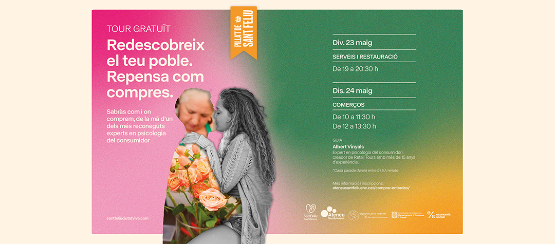 - Comerç (maig): revifar les botigues locals com a preferència de compra i espais de trobada. Eslògan: “Pilla’t de Sant Feliu (El comerç local obre per tu. I tu, on vas?)”