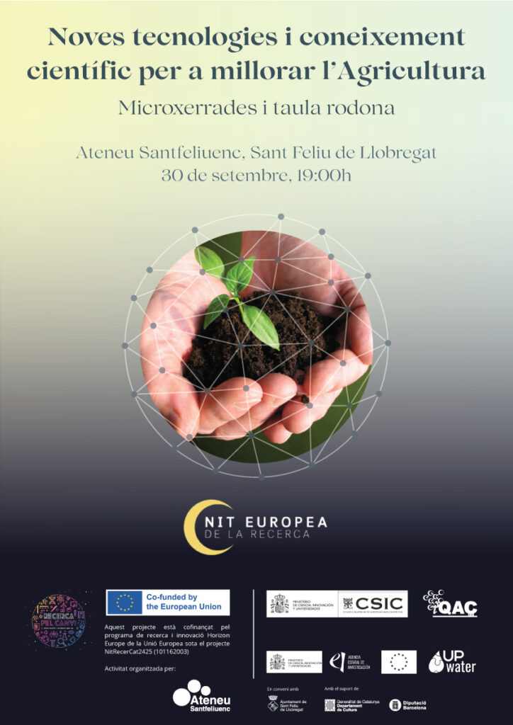 L’Institut de Química Avançada de Catalunya (IQAC) i el Consejo Superior de Investigaciones Científicas (CSIC) porten a l’Aula de Cultura de l’Ateneu una microxerrada i taula rodona sota el títol "Noves tecnologies i coneixement científic per a millorar l'Agricultura”, el dimarts 30 de setembre, a partir de les 19 h.