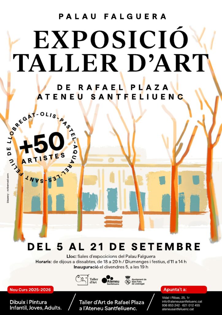 Després d’aquesta inauguració, us convidem a traslladar-vos al Palau Falguera, on es presentarà la mostra dels treballs de l’alumnat del Taller de Dibuix i Pintura de l’Ateneu, dirigit per Rafael Plaza.